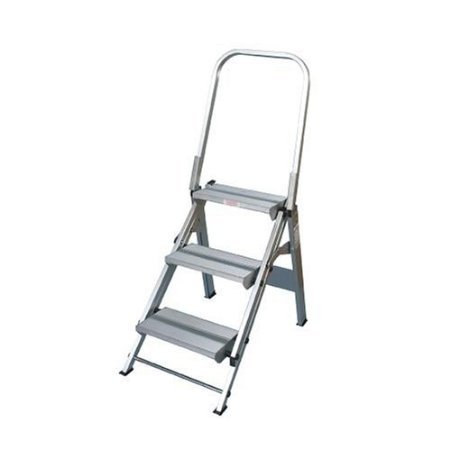 A 3 step, 3 Star, Type I ladder that has a 250 lb. duty rating. It features heavy duty slip resistant wide steps, nonskid feet, a work platform, hand grip, and plastic utility tray for holding paint cans and other project related items. It is ideal for painting trim work, tall cabinets and general cleaning projects. This project ladder also has a compact design and can easily be stored away when not in use. Tubular frame open dimensions: 19 1 16'' W. x 35 5 16'' D. x 57 3 8'' H. Working height to platform: 2'8''. Weighs only 23 lb.